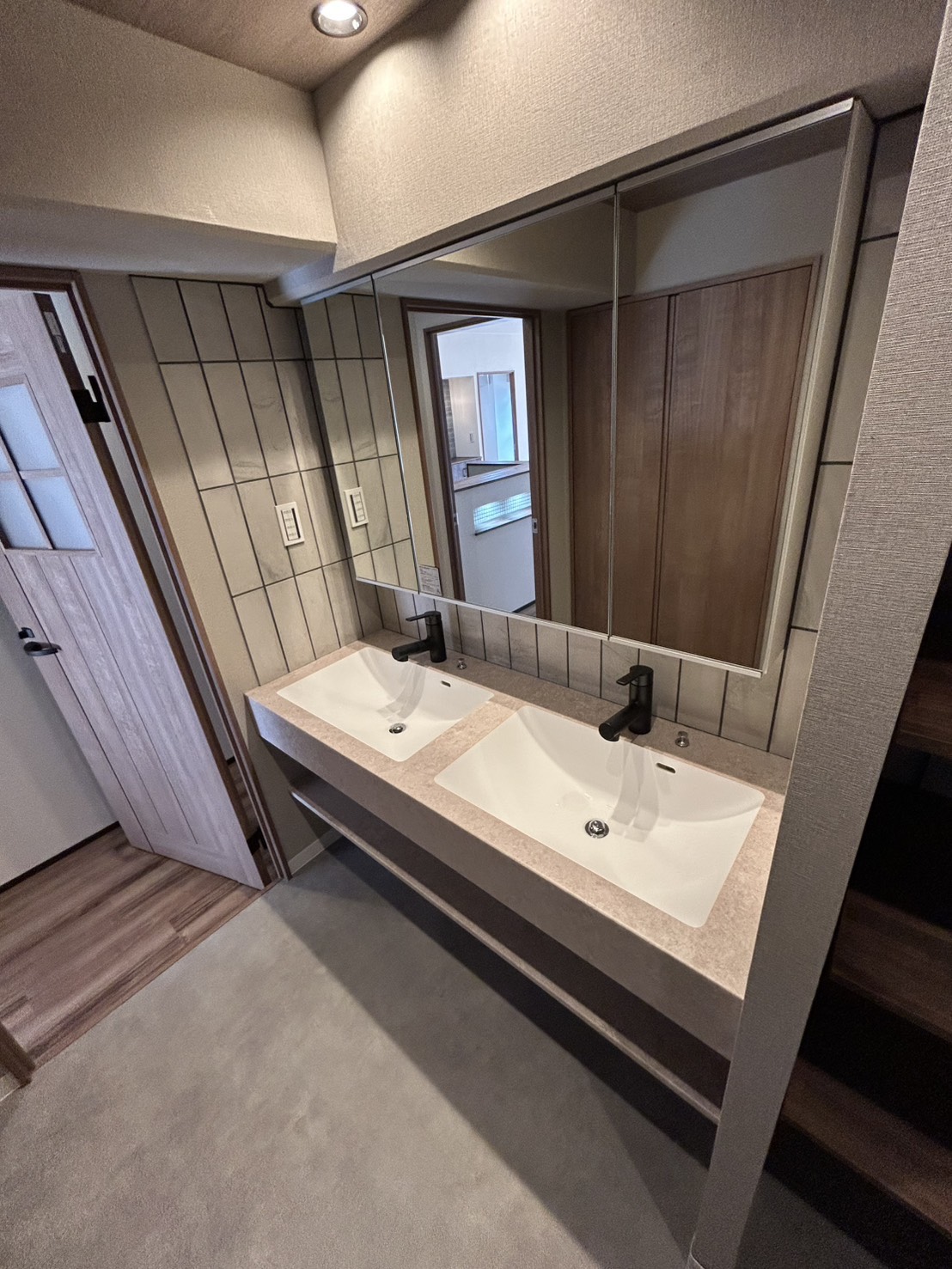 ・造作風カウンター洗面の新設(2ボウル仕様)
